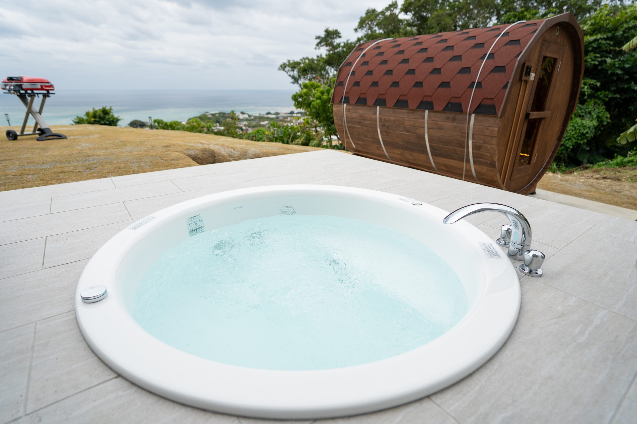 You can enjoy the ocean view from the sauna. There is also an outdoor shower and a cold bath.