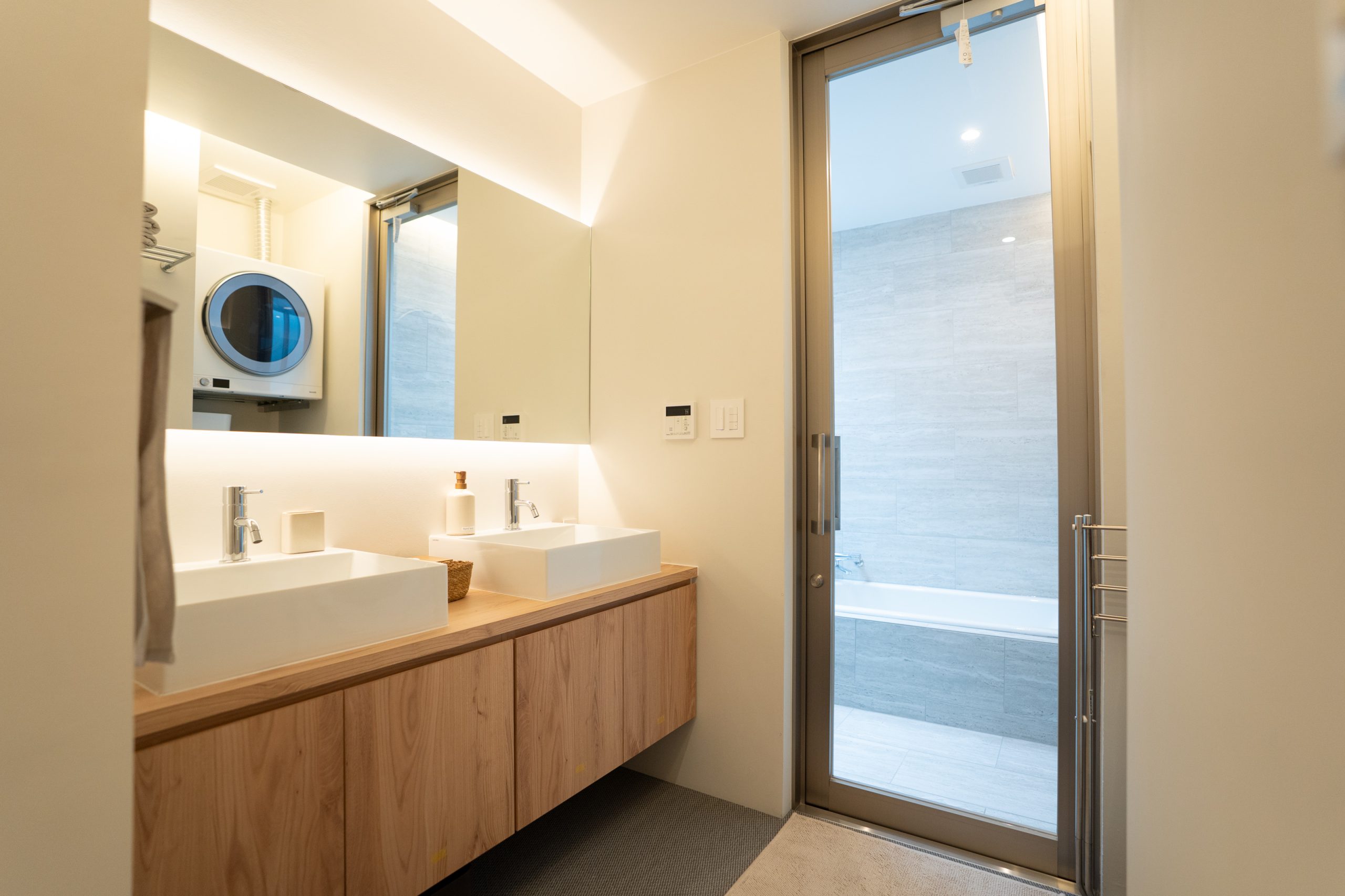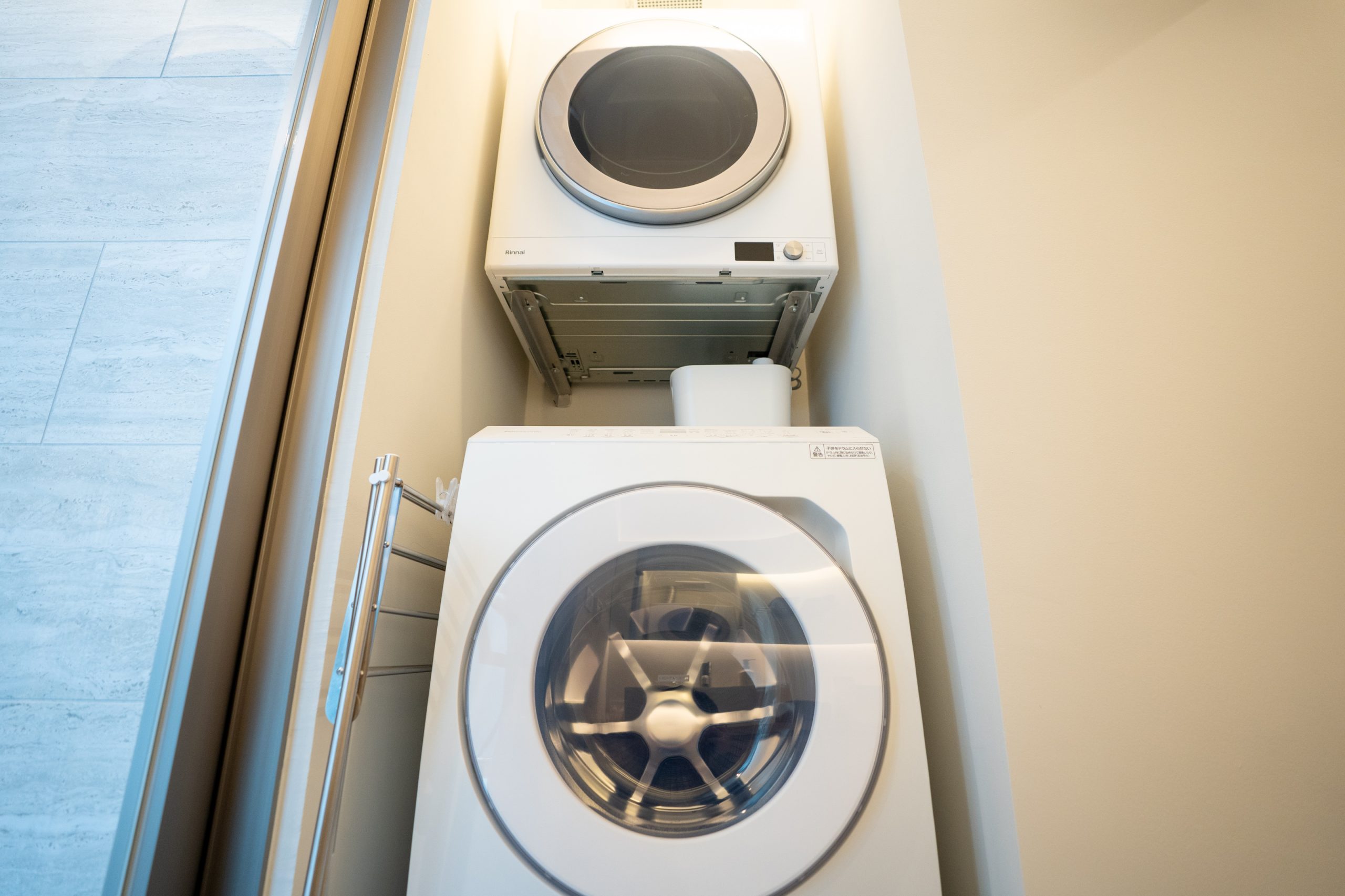 全自動洗濯機とガス乾燥機、洗濯洗剤/柔軟剤を備え付けております。