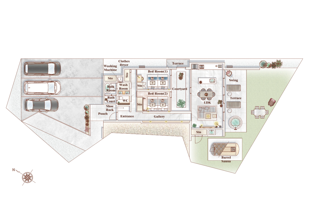 天気が良い日には外庭でバーベキューや焚火を楽しむこともできます。